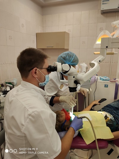 Мария Николаевна, используя дентальный микроскоп, осуществила осмотр, провела диагностику, удалили нервы, запломбировала и реставрировала зуб, таким образом подготовила его для дальнейшего протезирования, проведя, при этом, эндодонтическое лечение на высоком профессиональном уровне.